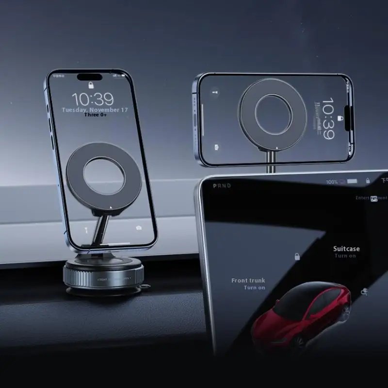Dual Mounting Options: Nano vacuum suction for dashboards and a magnetic base for desks — switch easily between car and office.
